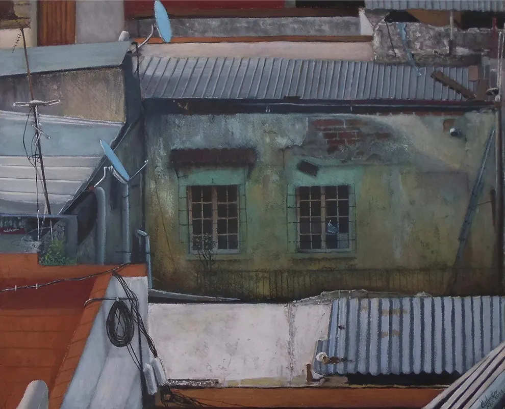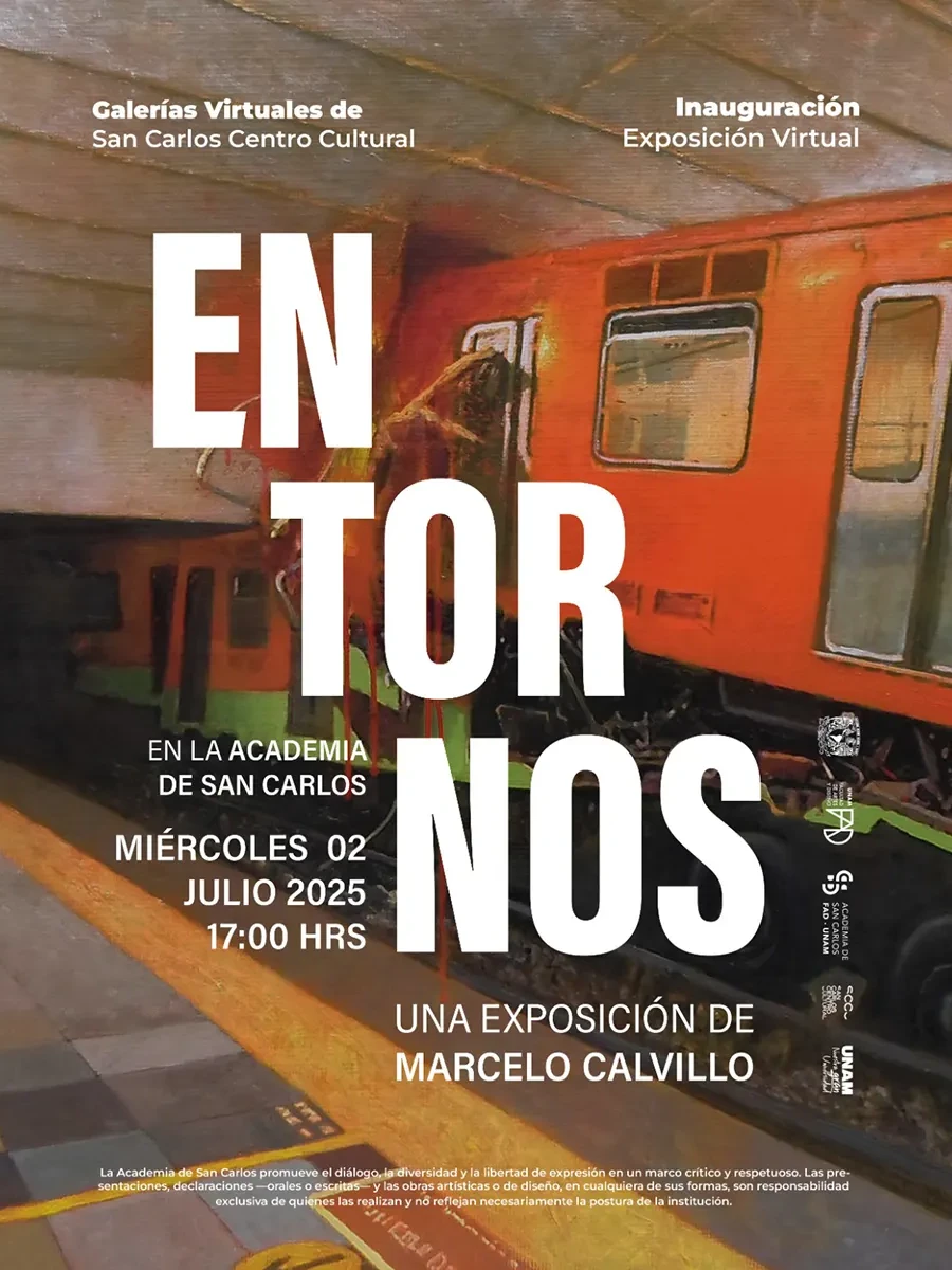 El paisaje es un constructo cultural que evoluciona en sincronía con la civilización que lo genera. “Entornos” es un proyecto de investigación-producción que pretende indagar sobre el paisaje actual y sus implicaciones estéticas, psicosociales y ecológicas. La geometría rectilínea de la urbe se presenta como un exterior-interior. Es decir, como un espacio externo contenido por otro más grande. En el que se está afuera, pero al interior del andén subterráneo o del vagón. Se está afuera, pero al interior del auto que a su vez está al interior del túnel o bajo elevados puentes.