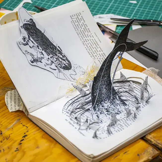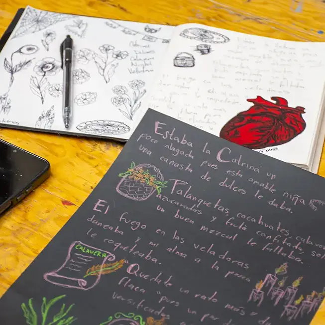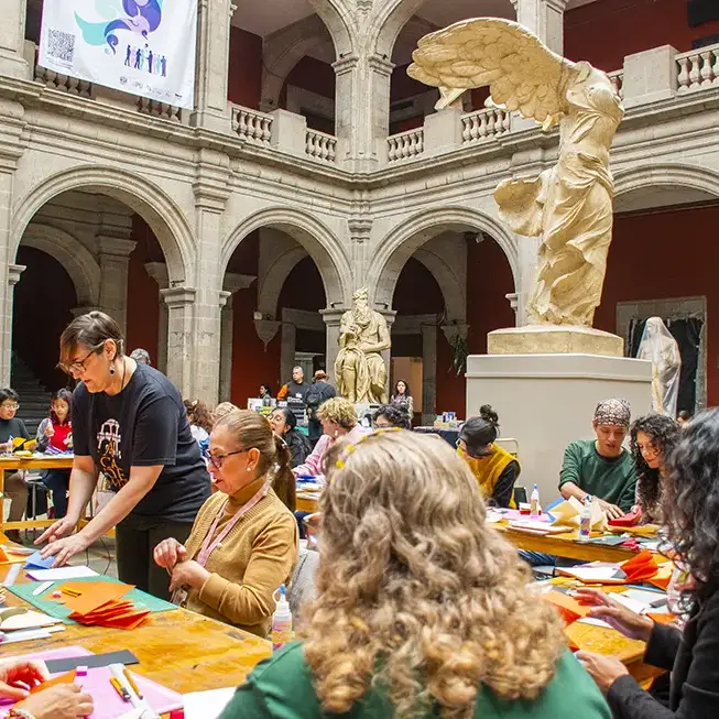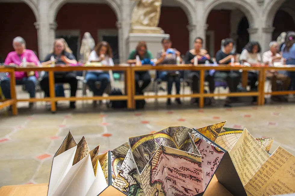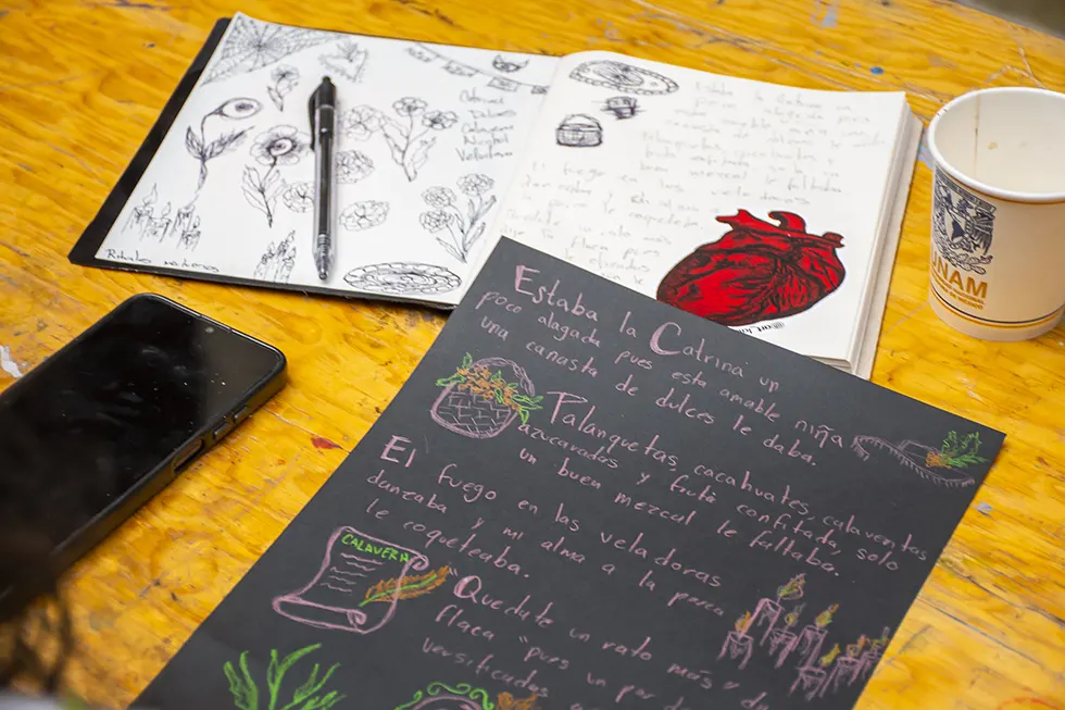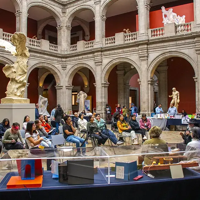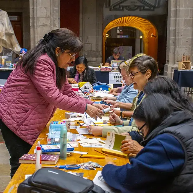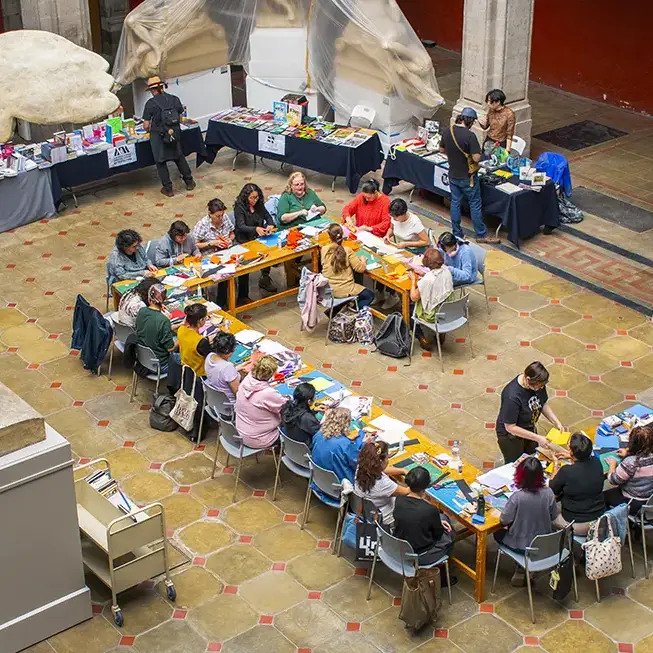 El patio del recinto fue punto de encuentro para editoriales independientes y proyectos especializados en arte, diseño y cultura visual, que ofrecieron publicaciones únicas y materiales poco comunes. Además, se realizaron talleres como el de libros plegables con base cuadrada, impartido por Elsa Madrigal, y el de libro intervenido, guiado por Laura Corona, donde los participantes experimentaron con técnicas y formatos alternativos.