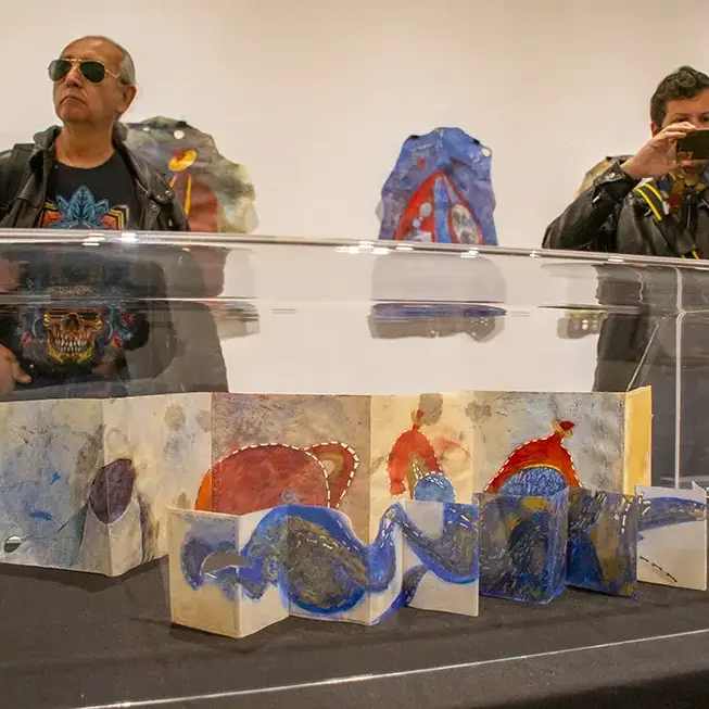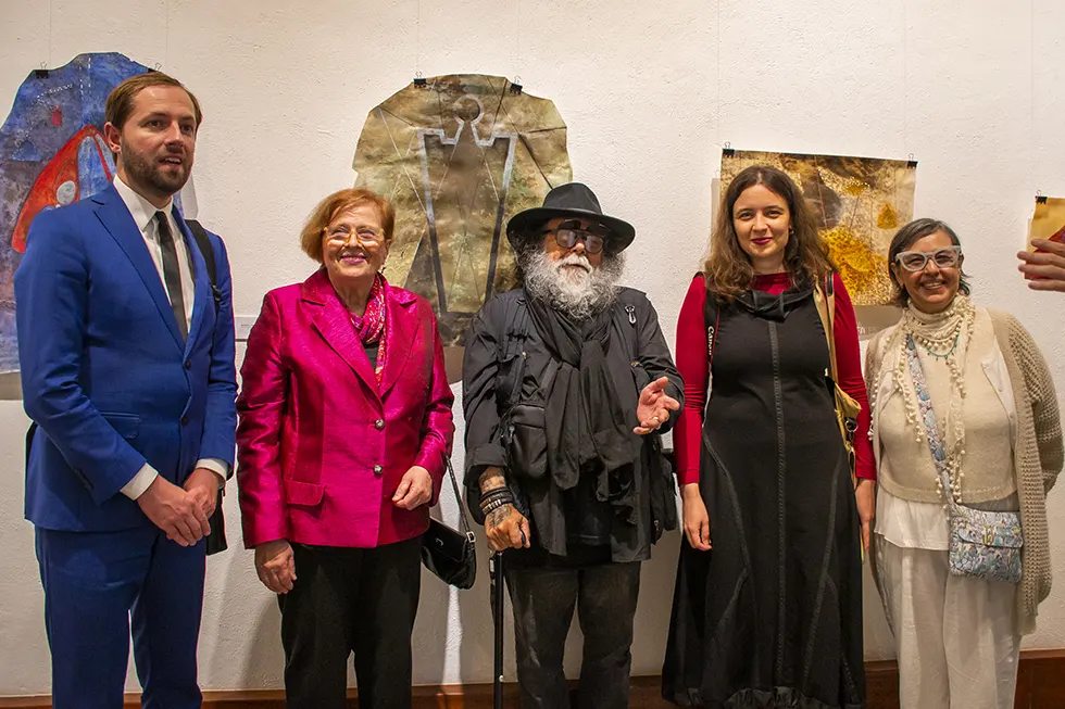 Durante la ceremonia, estuvieron presentes el Dr. Daniel Manzano , coordinador de San Carlos Centro Cultural; la Dra. Laura Corona, secretaria académica del Posgrado en Artes y Diseño; la Dra. Mónica De la Cruz, autora del texto de sala; y la propia Lepa Milošević, quien compartió con el público su visión sobre el pergamino como vehículo artístico y espiritual.